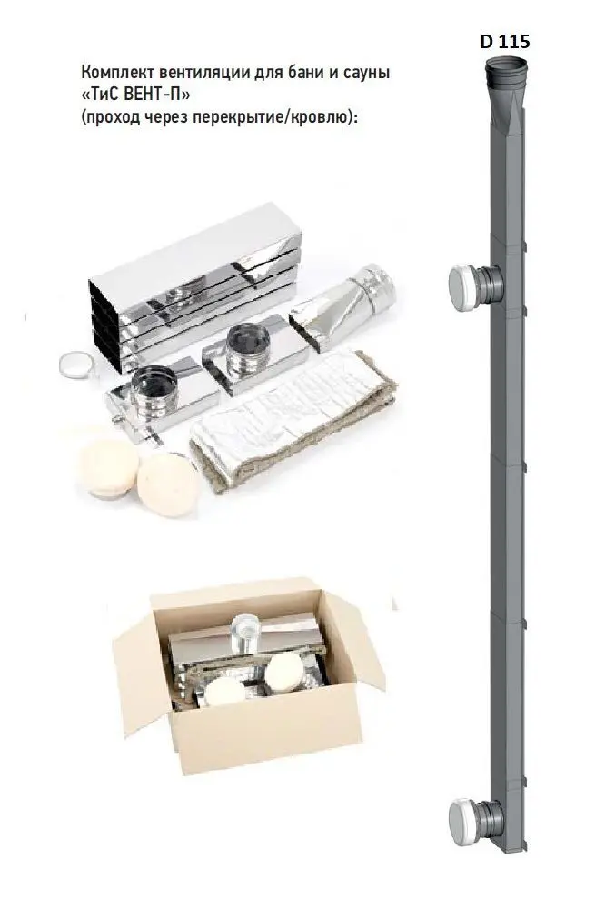 Комплект вентиляции для бани и сауны «ТиС ВЕНТ-П» (проход через перекрытие/кровлю):