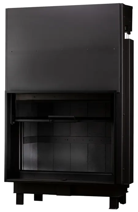 Современная и функциональная топка с плавным и бесшумным подъёмным механизмом дверцы. Дно топки выполнено в виде чаши с бортом и выложено шамотным кирпичом. Задняя и боковые стенки топочной камеры футерованы 3D вермикулитом. Шамот и вермикулит – это природные, экологически чистые материалы, при их нагревании не выделяется запах и токсичные вещества.