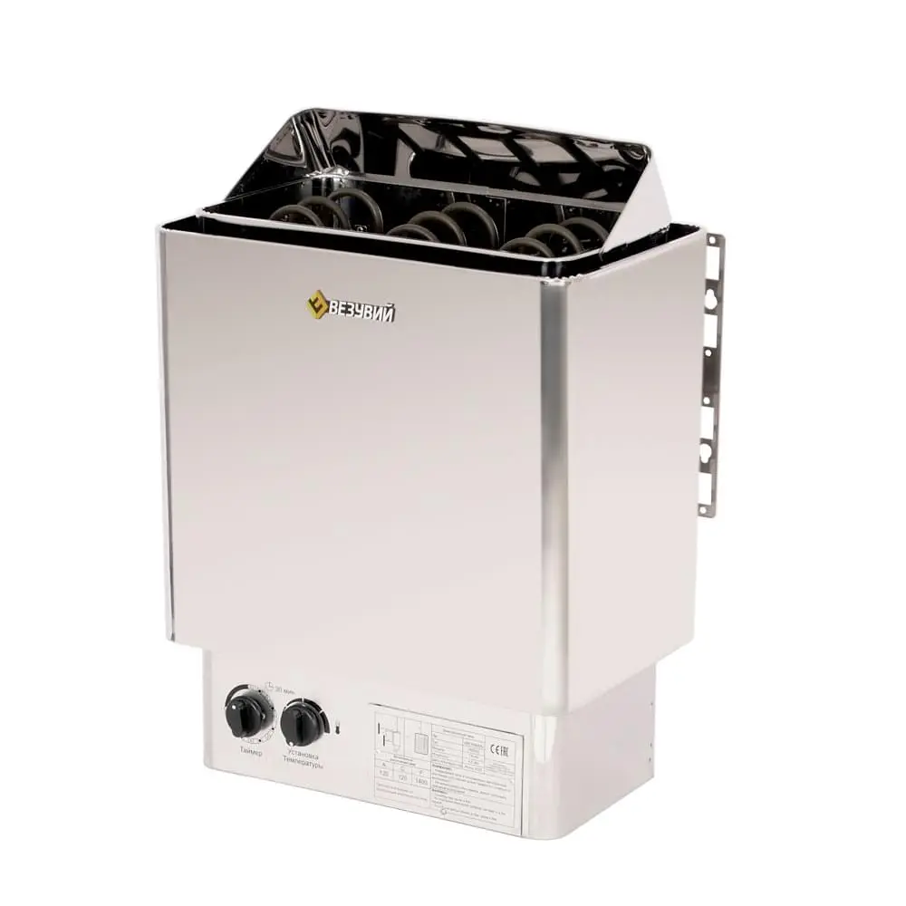 Навесная электропечь для бани и сауны, электрокаменка Везувий TREND-45, рабочее напряжение 380V, тепловая мощность 4.5 кВт, отопление парного помещения объемом от 4,5 до 6,5 м3.